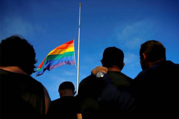 Mourners gather under an LGBT pride flag flying at half-mast for a candlelight vigil in remembrance for mass shooting victims in Orlando, from San Diego, California Previous Next Published June 16, 2016 at 620 × 412 in Guest Feature: #PrayForOrlando